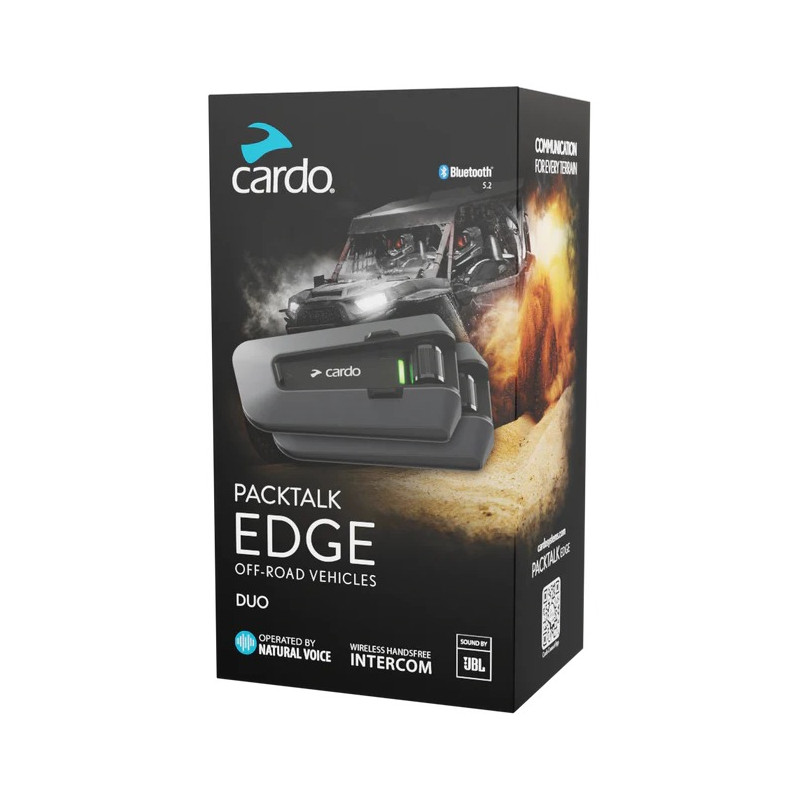 Packtalk Edge ORV je v současnosti nejdokonalejší interkom v nabídce společnosti Cardo. Verze ORV je ještě odolnější vůči nečistotám. Obsahuje vše, co jste kdy od interkomu Bluetooth očekávali. Ještě kompaktnější design, odolné vodotěsné pouzdro a pohlcující zvuk špičkové kvality díky reproduktorům JBL.Packtalk Edge ORV vznikl vylepšením svého předchůdce, odstraněním jeho slabších míst a přidáním nejnovějších technologií, jako je Bluetooth 5.2 a Dynamic Mesh Communication 2. generace.